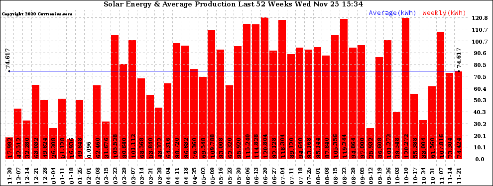 20201125 Weekly Solar Energy Production Last 52 Weeks