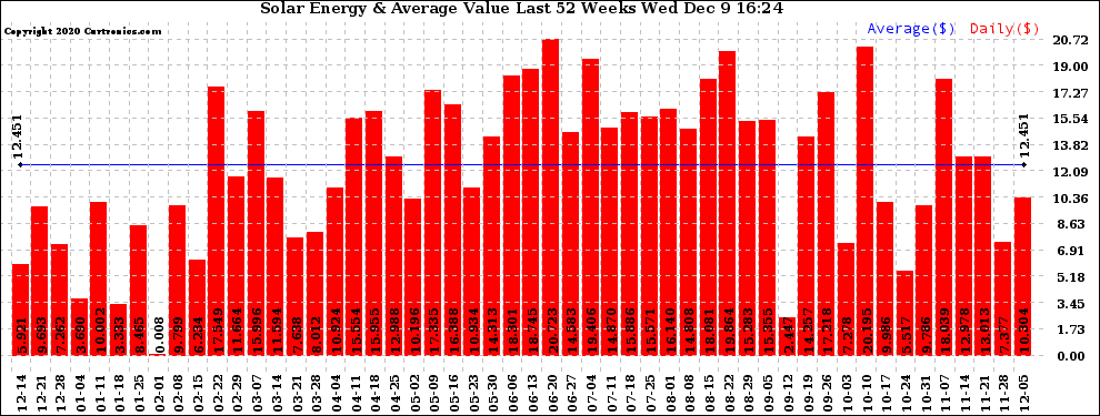 20201209 Weekly Solar Energy Production Value Last 52 Weeks