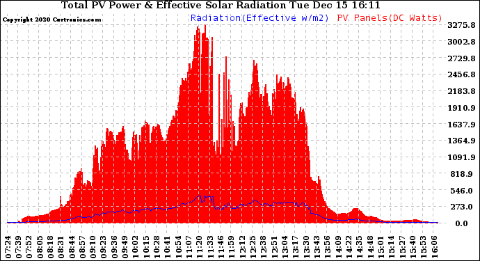 20201215 Total PV Panel Power Output & Effective Solar Radiation