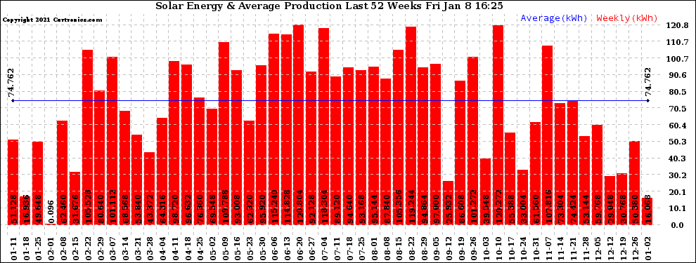 20210108 Weekly Solar Energy Production Last 52 Weeks