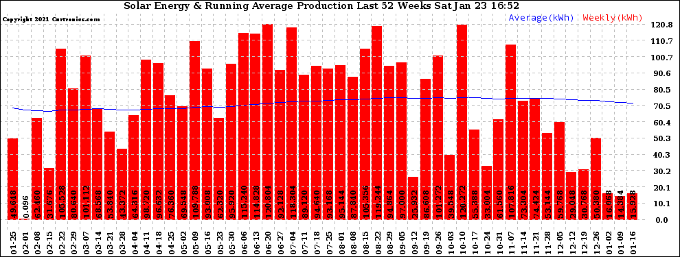 20210123 Weekly Solar Energy Production Running Average Last 52 Weeks
