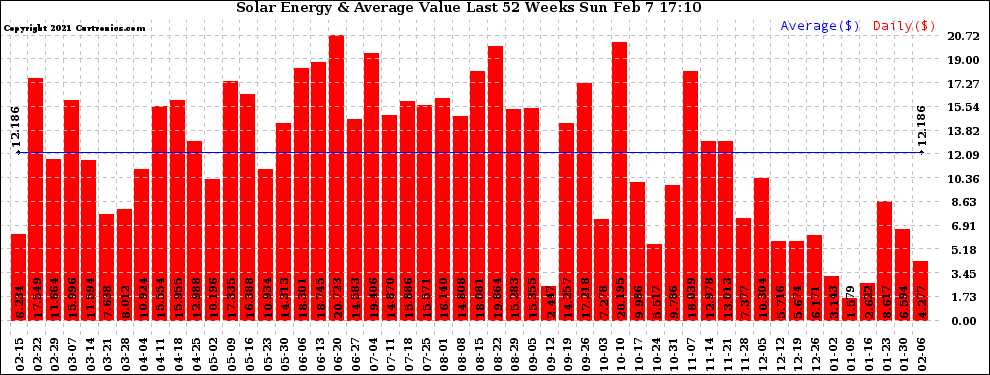 20210207 Weekly Solar Energy Production Value Last 52 Weeks