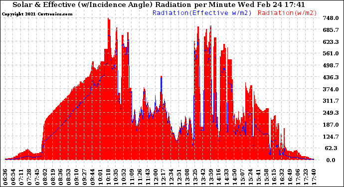 20210224 Solar Radiation & Effective Solar Radiation per Minute