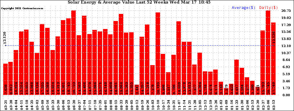 20210317 Weekly Solar Energy Production Value Last 52 Weeks