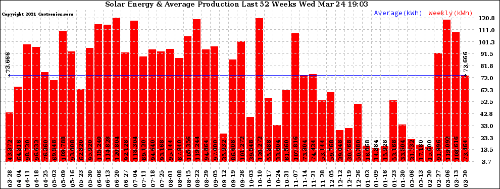 20210324 Weekly Solar Energy Production Last 52 Weeks