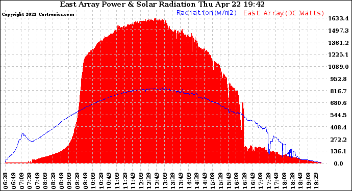 20210422 East Array Power Output & Solar Radiation