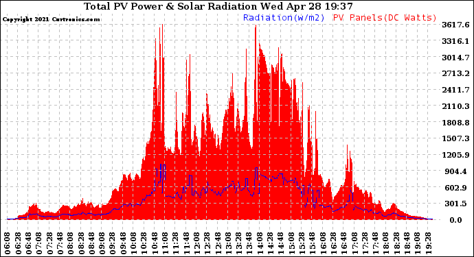 20210428 Total PV Panel Power Output & Solar Radiation