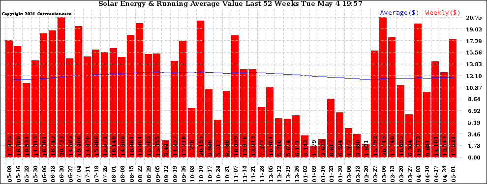 20210504 Weekly Solar Energy Production Value Running Average Last 52 Weeks