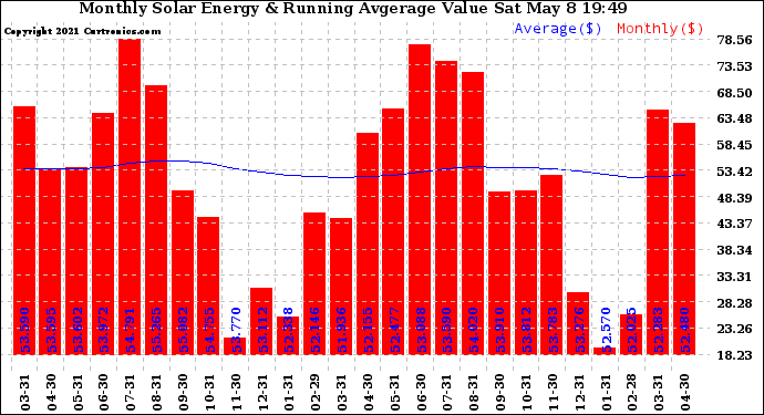 20210508 Monthly Solar Energy Production Value Running Average
