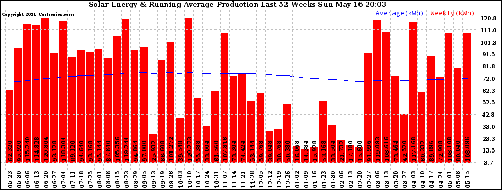 20210516 Weekly Solar Energy Production Running Average Last 52 Weeks