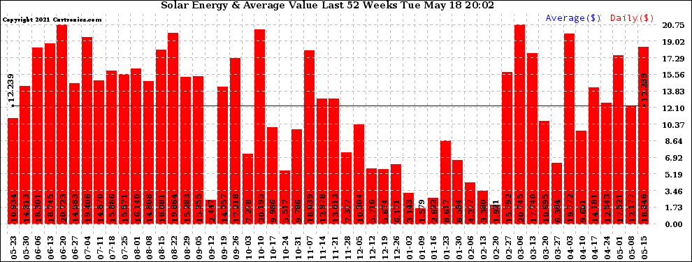 20210518 Weekly Solar Energy Production Value Last 52 Weeks