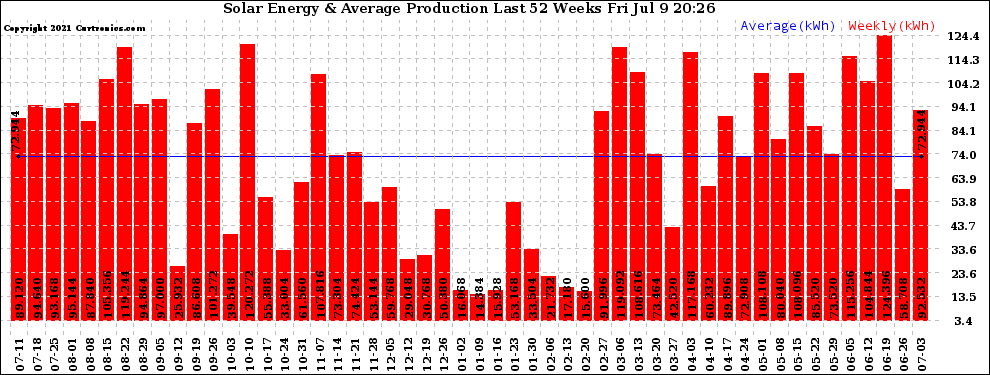 20210709 Weekly Solar Energy Production Last 52 Weeks