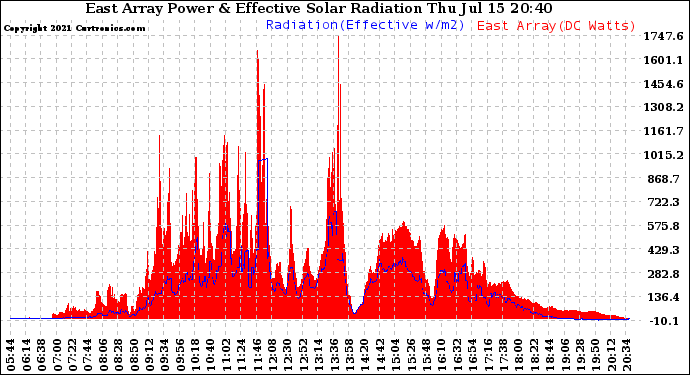 20210715 East Array Power Output & Effective Solar Radiation