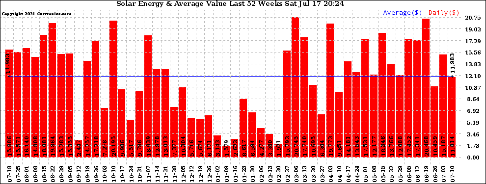 20210717 Weekly Solar Energy Production Value Last 52 Weeks