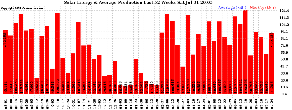 20210731 Weekly Solar Energy Production Last 52 Weeks