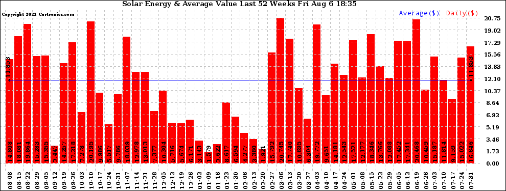 20210806 Weekly Solar Energy Production Value Last 52 Weeks