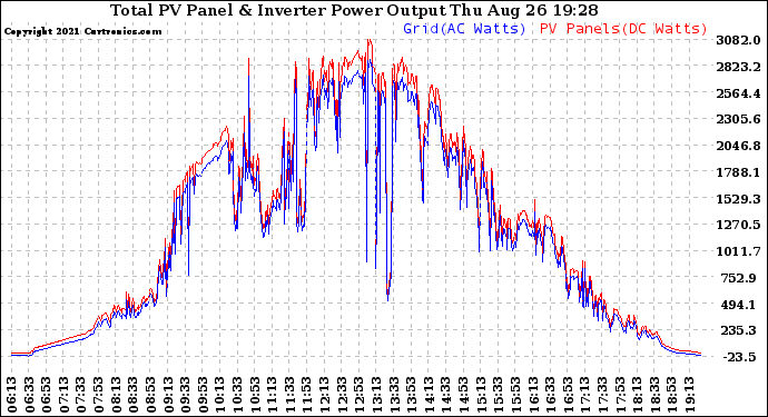 20210826 PV Panel Power Output & Inverter Power Output