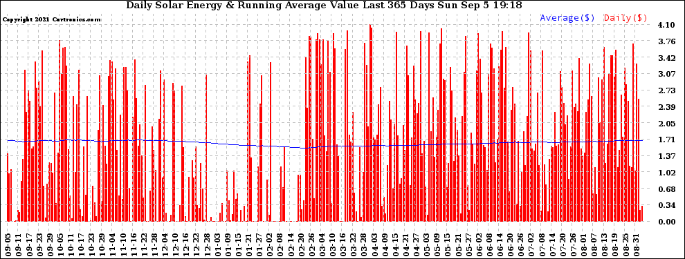 20210905 Daily Solar Energy Production Value Running Average Last 365 Days
