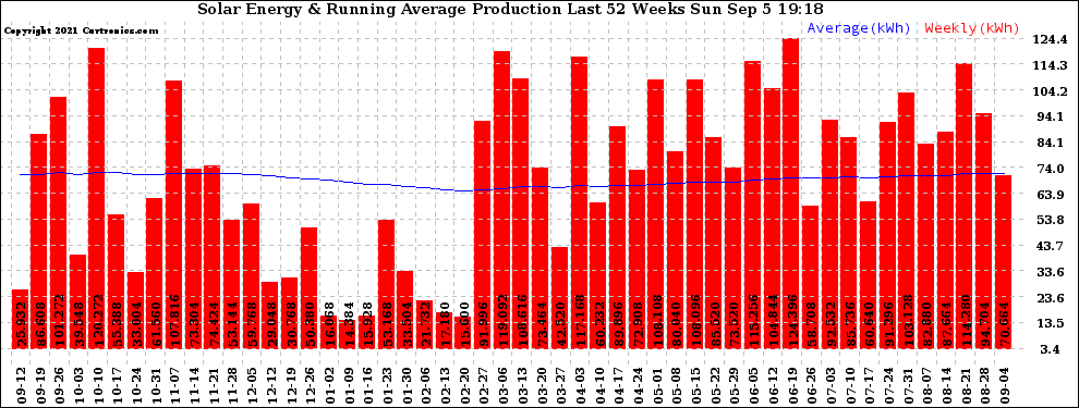 20210905 Weekly Solar Energy Production Running Average Last 52 Weeks