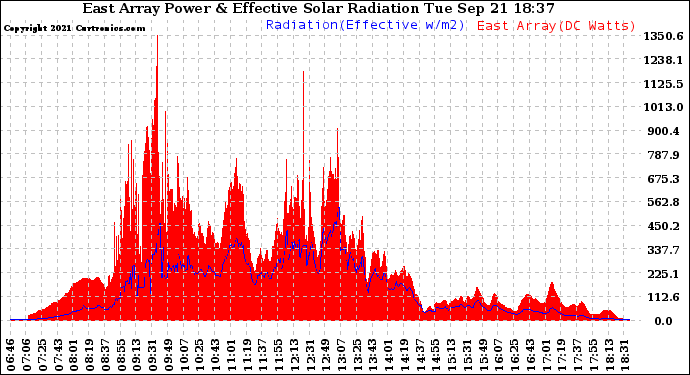 20210921 East Array Power Output & Effective Solar Radiation