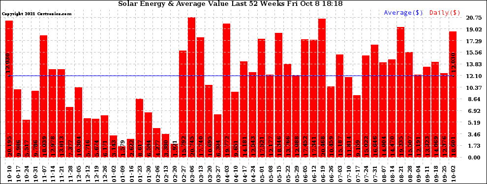 20211008 Weekly Solar Energy Production Value Last 52 Weeks