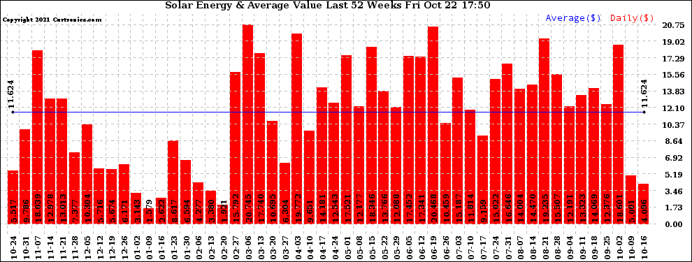 20211022 Weekly Solar Energy Production Value Last 52 Weeks