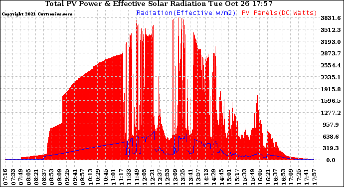 20211026 Total PV Panel Power Output & Effective Solar Radiation
