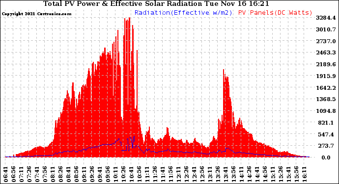 20211116 Total PV Panel Power Output & Effective Solar Radiation