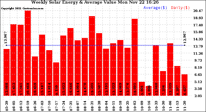 20211122 Weekly Solar Energy Production Value