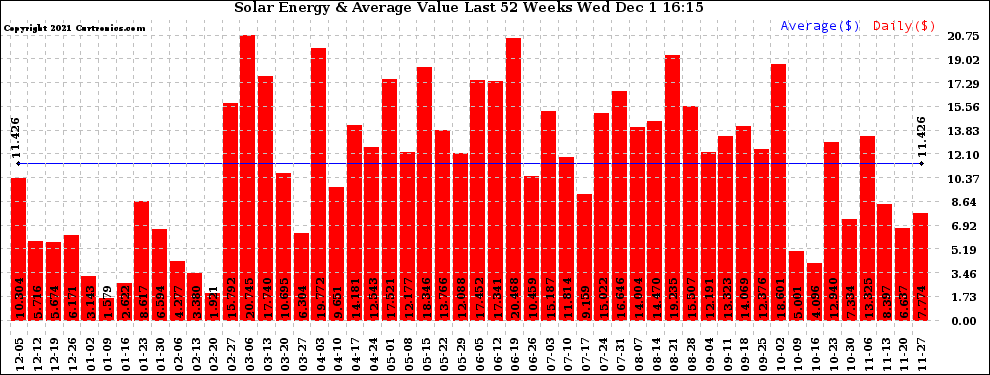 20211201 Weekly Solar Energy Production Value Last 52 Weeks