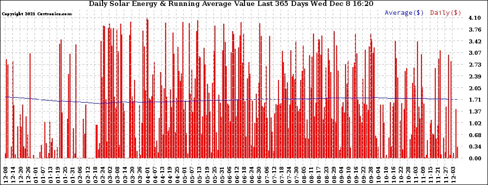 20211208 Daily Solar Energy Production Value Running Average Last 365 Days