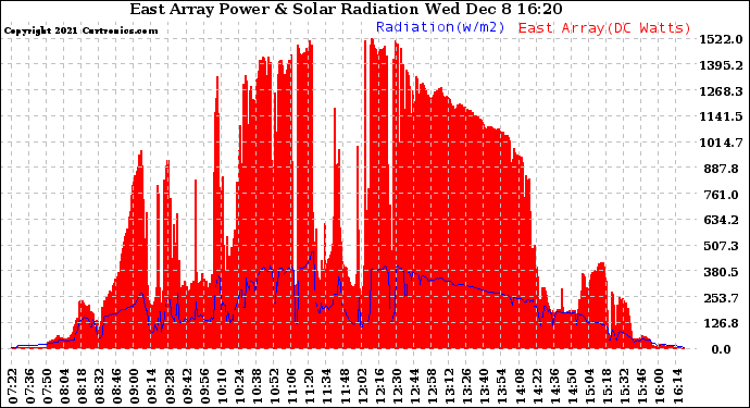20211208 East Array Power Output & Solar Radiation