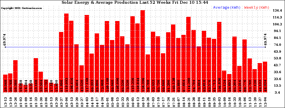 20211210 Weekly Solar Energy Production Last 52 Weeks