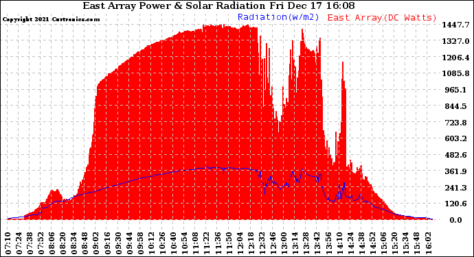 20211217 East Array Power Output & Solar Radiation