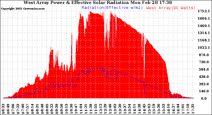 20220228 West Array Power Output & Effective Solar Radiation