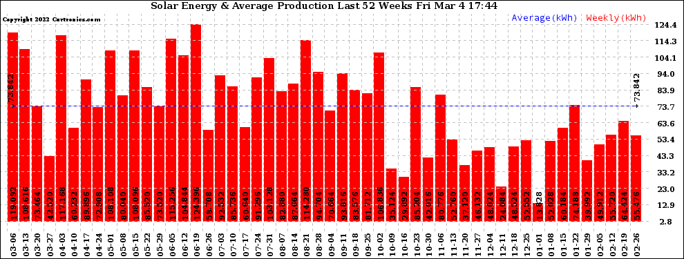 20220304 Weekly Solar Energy Production Last 52 Weeks