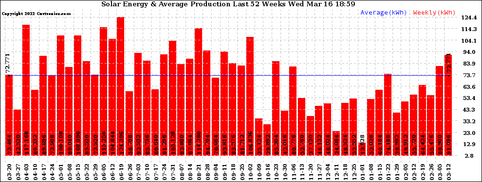 20220316 Weekly Solar Energy Production Last 52 Weeks