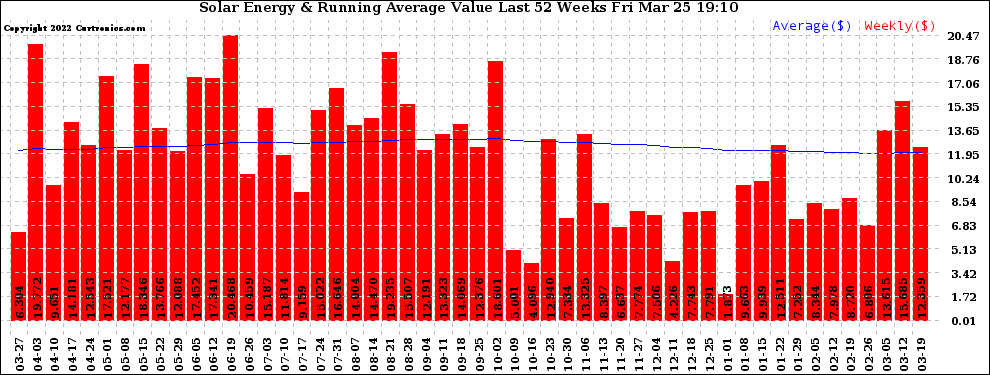 20220325 Weekly Solar Energy Production Value Running Average Last 52 Weeks