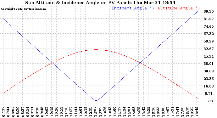 20220331 Sun Altitude Angle & Sun Incidence Angle on PV Panels
