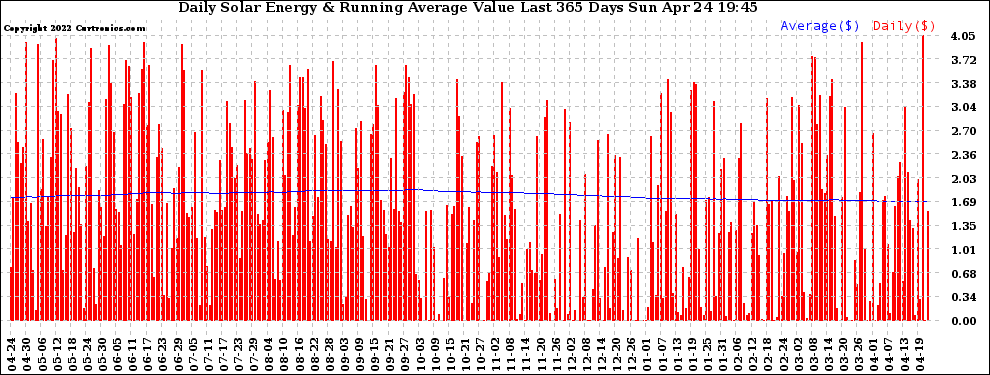 20220424 Daily Solar Energy Production Value Running Average Last 365 Days