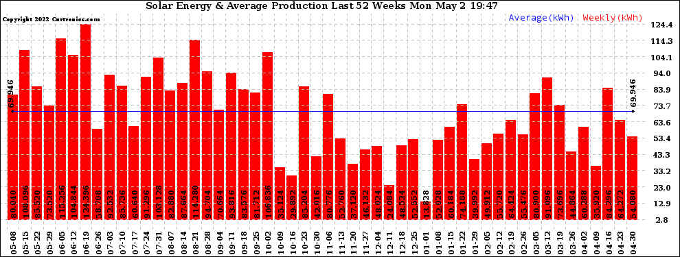 20220502 Weekly Solar Energy Production Last 52 Weeks