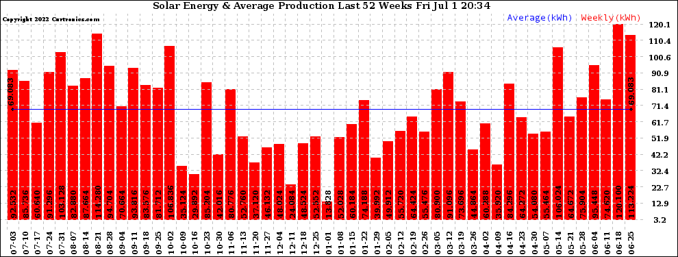 20220701 Weekly Solar Energy Production Last 52 Weeks