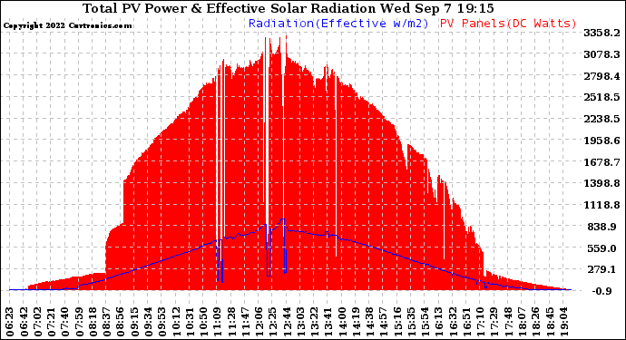 20220907 Total PV Panel Power Output & Effective Solar Radiation