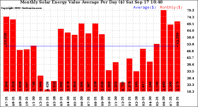20220917 Monthly Solar Energy Value Average Per Day ($)