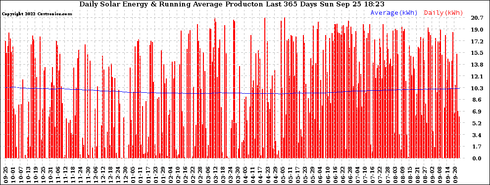 20220925 Daily Solar Energy Production Running Average Last 365 Days