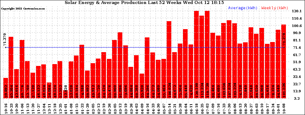 20221012 Weekly Solar Energy Production Last 52 Weeks