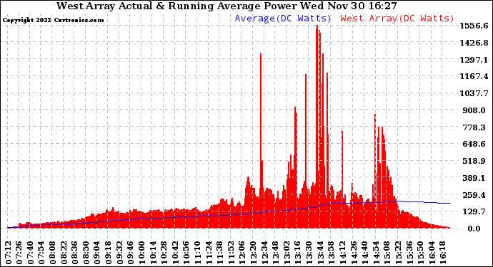 20221130 West Array Actual & Running Average Power Output