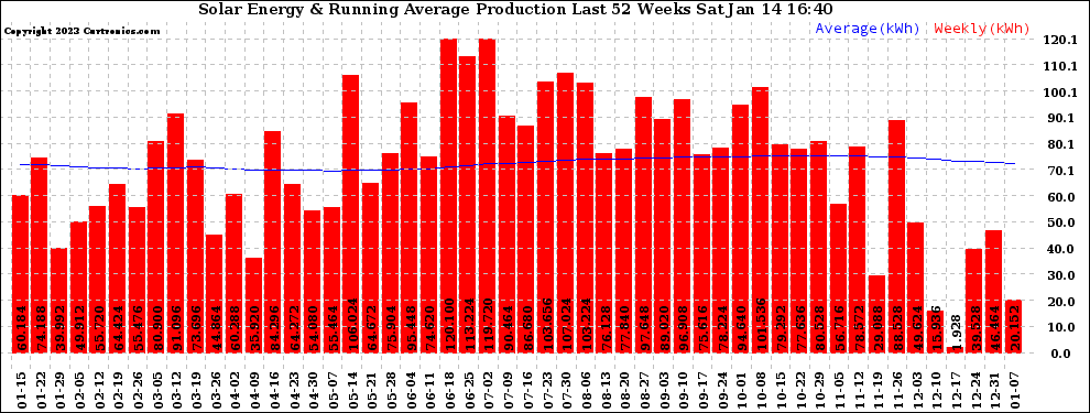 20230114 Weekly Solar Energy Production Running Average Last 52 Weeks
