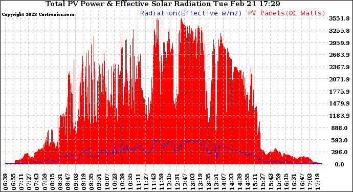 20230221 Total PV Panel Power Output & Effective Solar Radiation