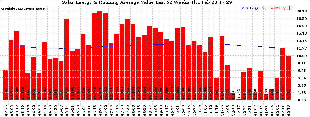 20230223 Weekly Solar Energy Production Value Running Average Last 52 Weeks